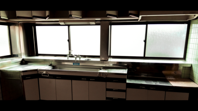 これにより、レトロなタイル壁やステンレス製の作業台が明るく照らされ、清潔感あふれる作業環境を提供します。