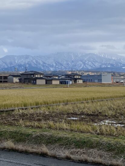 海側は積雪が少なく、山側は一気に雪景色へ——