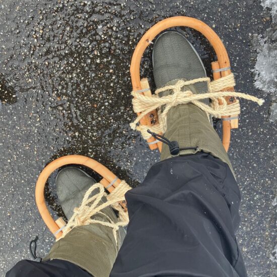 「かんじき」は木や竹で作られた輪っかを足に取り付ける伝統的な道具です。