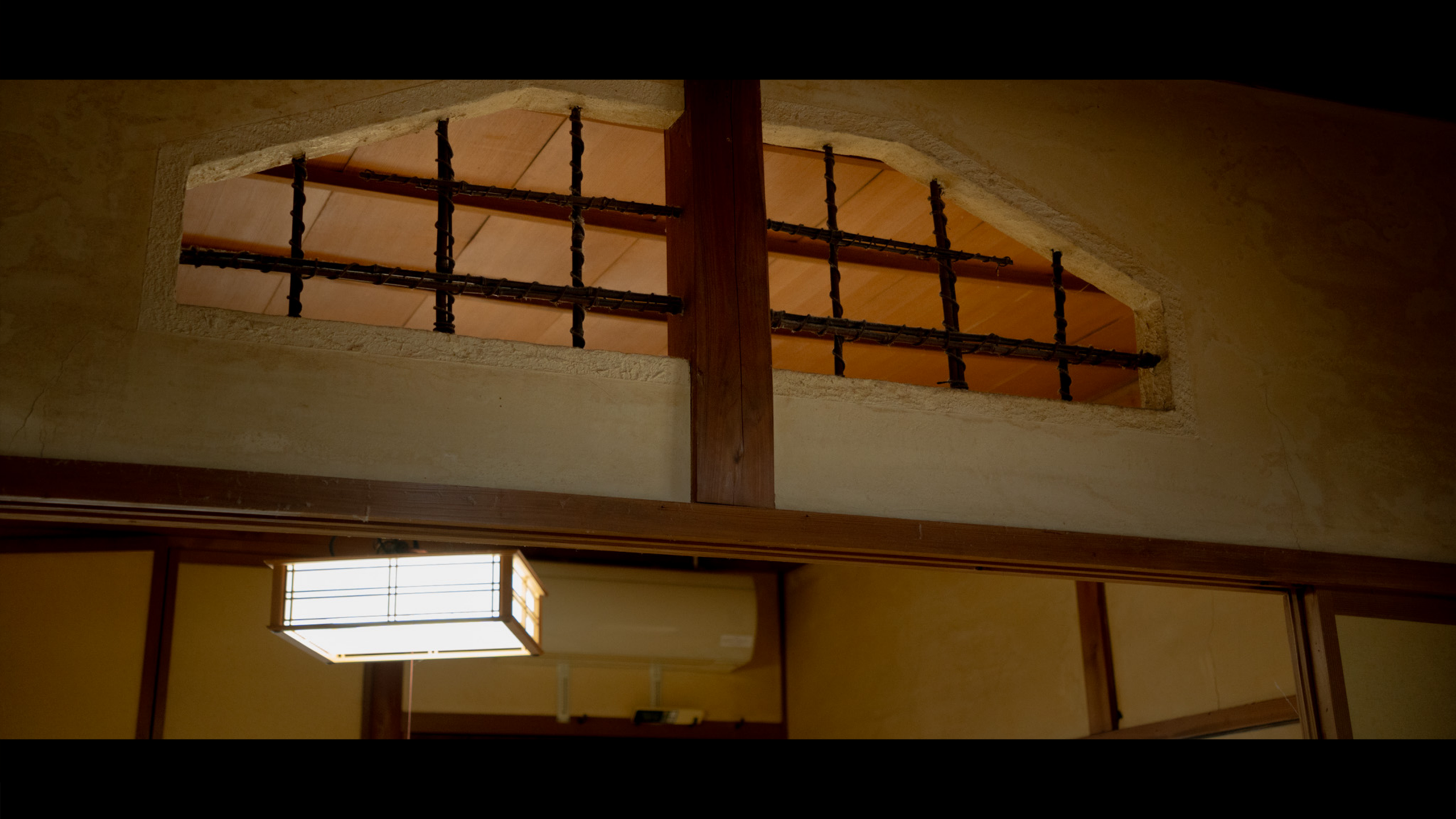 多くの日本家屋の欄間(らんま)には、重厚な木彫りの細工が施されていますが、この家の欄間は一味違います。