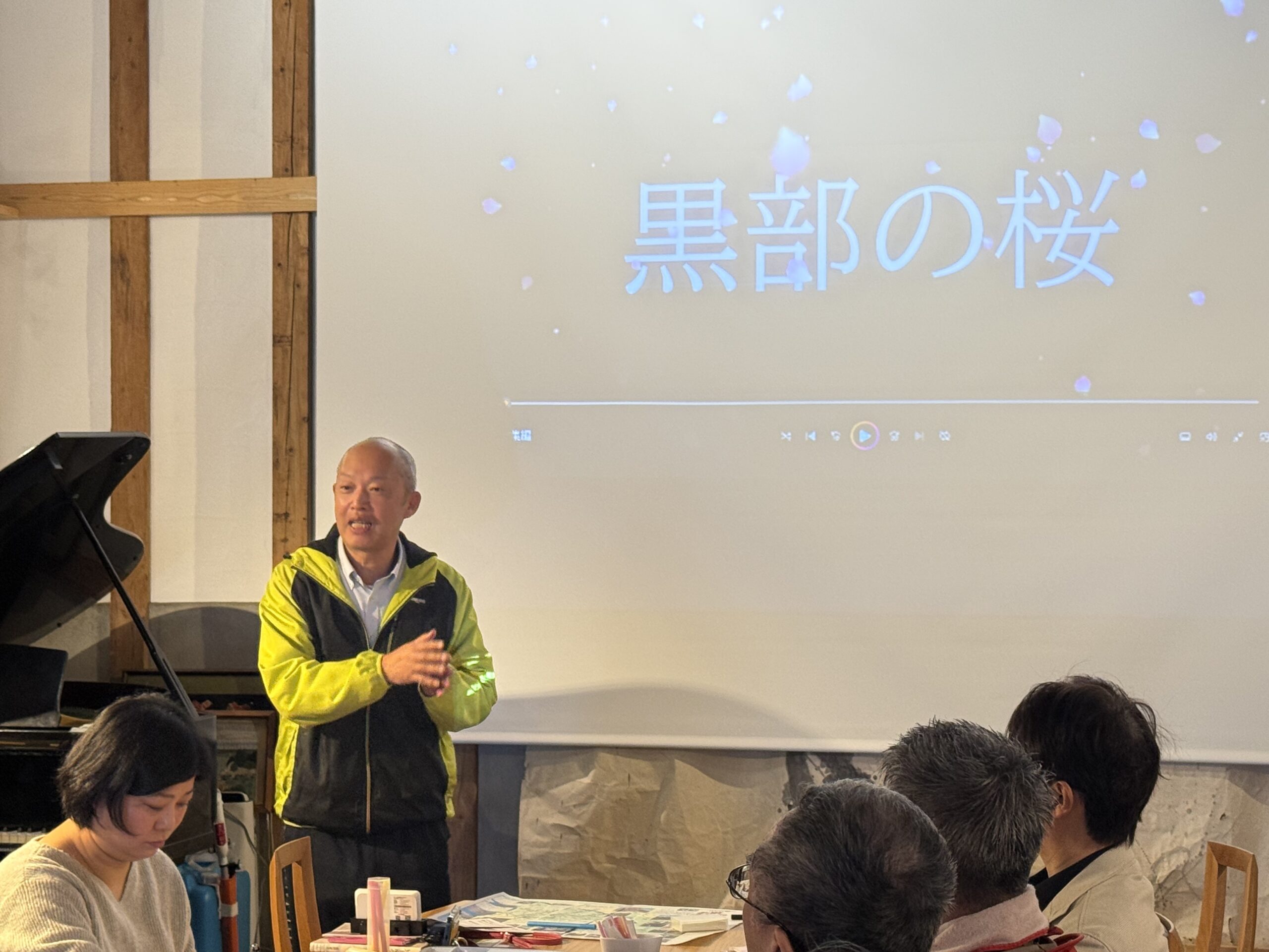 「サクラワークショップ」リーダーの松倉孝暁さんから黒部の桜にまつわる歴史的背景と