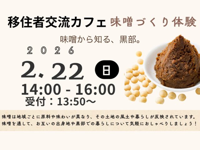 【移住者交流カフェ 味噌づくり体験】 味噌は、土地の水や気候、暮らしがそのまま表れる食べもの。 黒部の冬の日常を、味噌づくりを通して体験して…