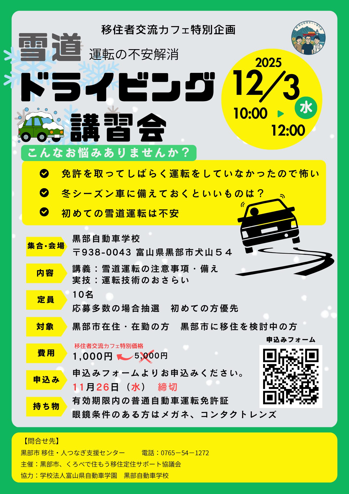 雪道運転の不安を解消ドライビング講習会を開催します。